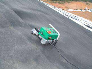 土工膜鋪設完成后,應盡量減少在膜面上行走、搬動工具等,凡能對膜造成危害的物件,均不應放在膜上或攜帶在膜上行走,以免對膜造成意外損傷。工膜的焊接熱鍥焊機焊接工序分為調節壓力 設定溫度 設定速度 焊縫搭接檢查 裝膜入機 啟動馬達加壓焊接。接縫處不得有油污、灰塵,土工膜的搭接段面不應夾有泥沙等雜物,當有雜物時必須在焊接前清理干凈。每天焊接開始時,必須在現場先試焊一 條0.9mm×0.3mm的試樣,搭接寬度不小于10cm,并用拉力機現場進行剝離和剪切試驗,試樣合格后,便可用當時調整好的速度、壓力、溫度進行正是 焊接。試樣上需標明日期、時刻、環境溫度。熱鍥焊機在焊接過程中,需隨時注意焊機的運行情況,要根據現場的實際情況對速度和溫度進行微調。焊縫要求整齊、 美觀、不得有滑焊、跳走現象。
