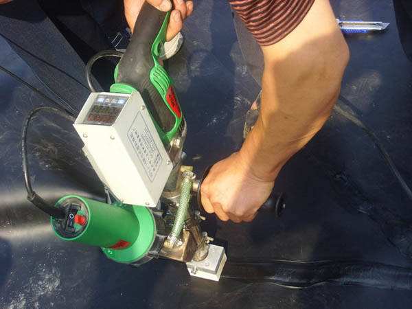 土工膜進(jìn)行切割、對齊、清潔(擦拭灰塵),并在焊接前進(jìn)行試焊。采用TH-2型地膜焊機(jī)焊接